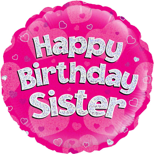 Globo holográfico de aluminio de roble de 18" Feliz cumpleaños hermana