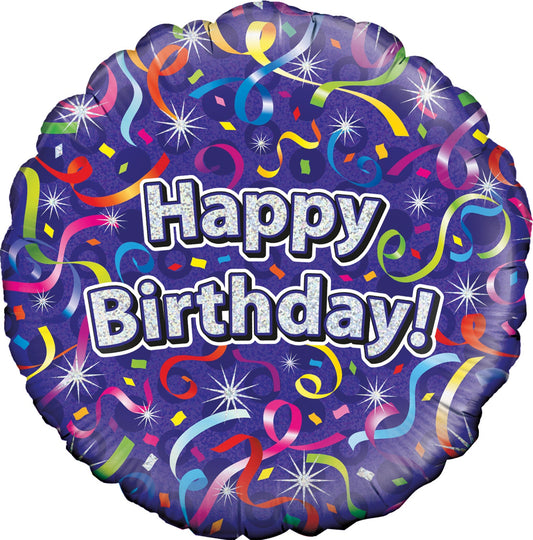 Globo holográfico de aluminio Oaktree con serpentinas de feliz cumpleaños de 18"
