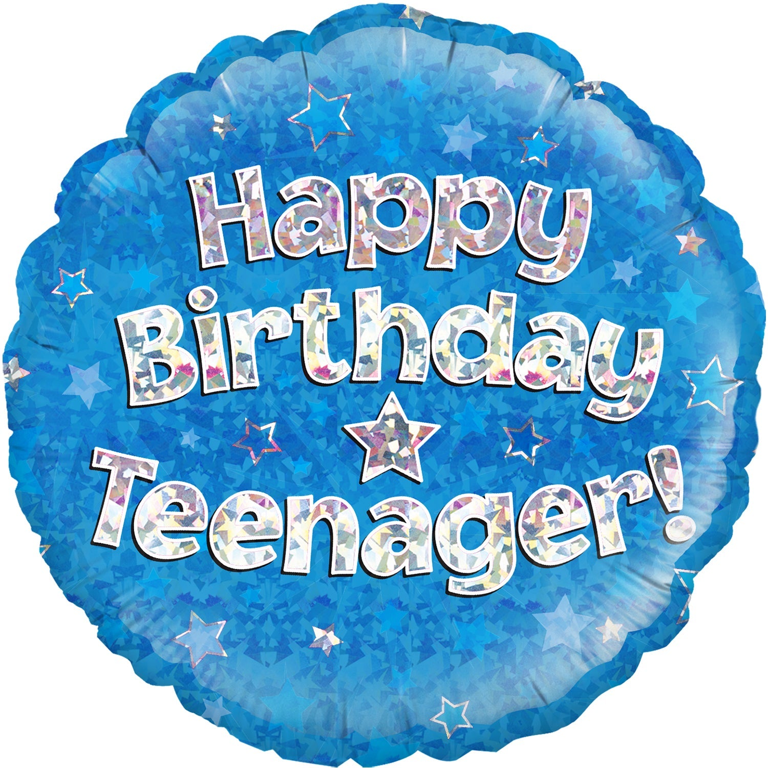 Globo de aluminio holográfico azul de roble feliz cumpleaños adolescente de 18"