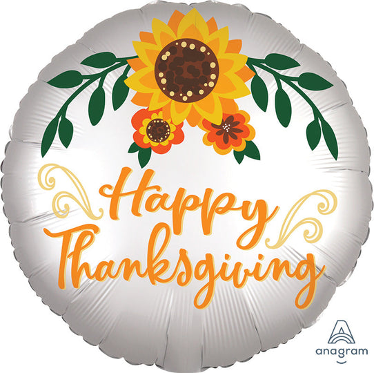 Globo de aluminio floral con infusión de satén Feliz Día de Acción de Gracias de 18"