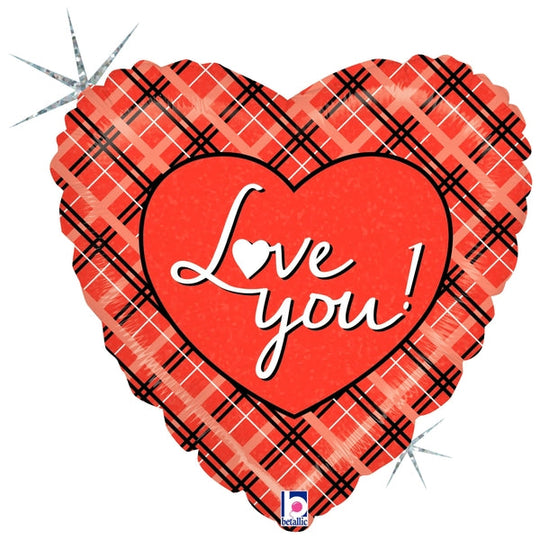 Globo holográfico de 18" empaquetado Love You Plaid