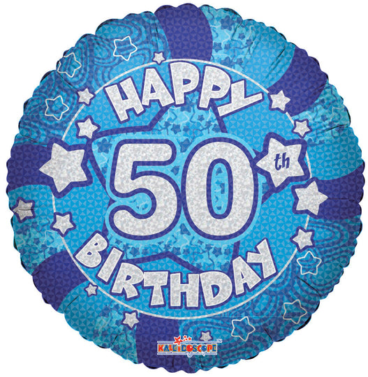 Globo holográfico azul de feliz cumpleaños número 50 de 18"