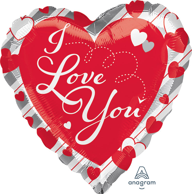 Globo Love de 18" con corazón rojo y rayas plateadas