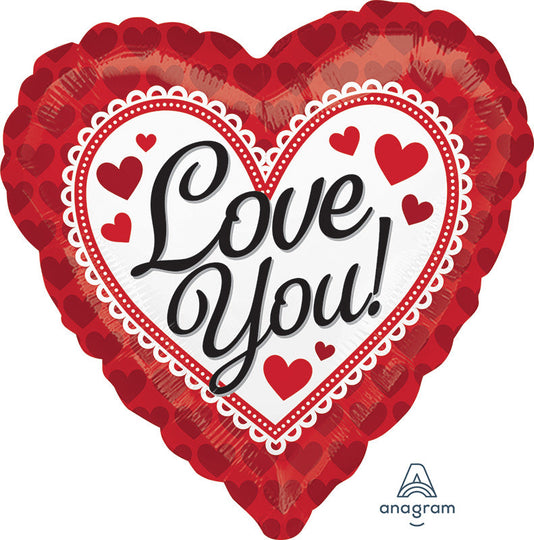 Globo de aluminio con borde de corazón rojo Love You de 18"