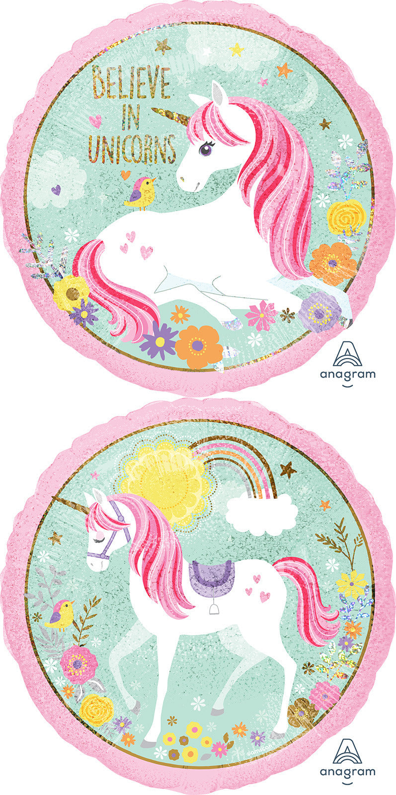 Globo holográfico de aluminio mágico de unicornio de 18"