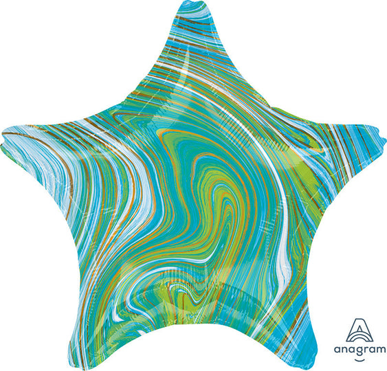 Globo de aluminio con forma de estrella verde azul Marblez de 18"