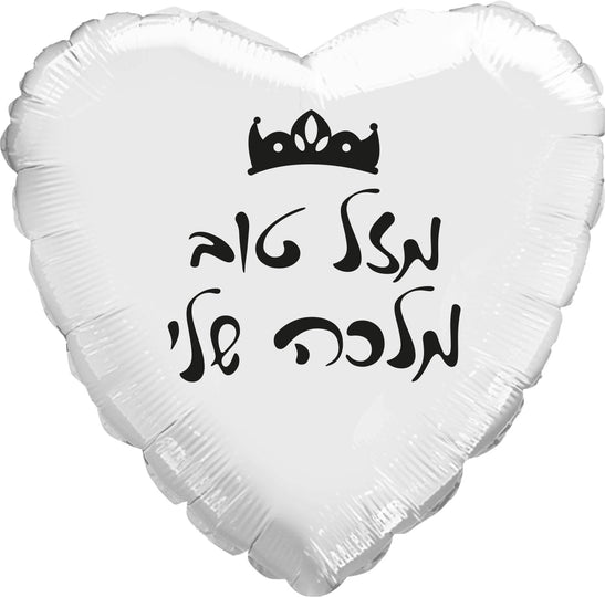 Globo de aluminio hebreo con corazón blanco Mazel Tov My Queen de 18"