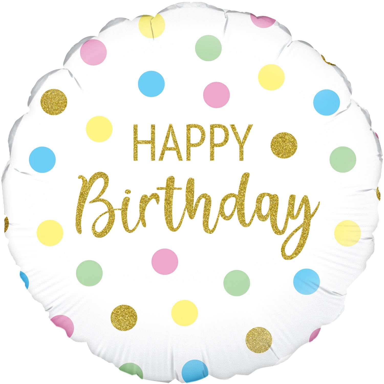 Globo holográfico de aluminio de roble con diseño de feliz cumpleaños y puntos pastel de 18"