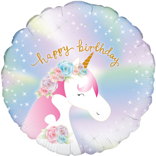 Globo holográfico de hoja de roble de cumpleaños de unicornio pastel de 18"