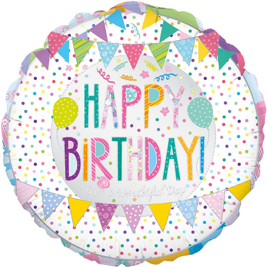 Globo de aluminio Oaktree de cumpleaños con patchwork de 18"