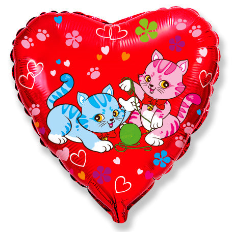 Globo Mylar de 18" con forma de corazón rojo y gatos dulces
