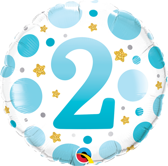 Globo metalizado redondo de 18" con 2 puntos azules y edad 2