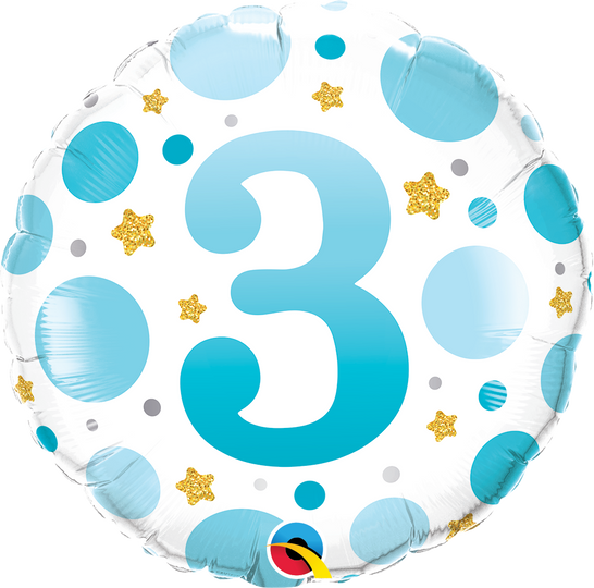 Globo metalizado con puntos azules, redondo, de 18" y 3 años de edad