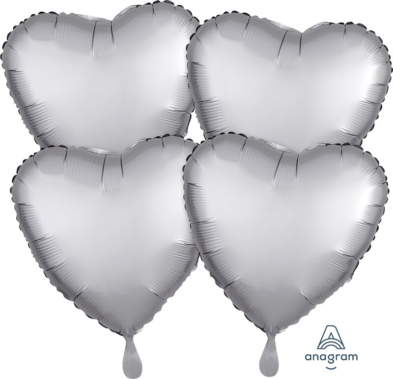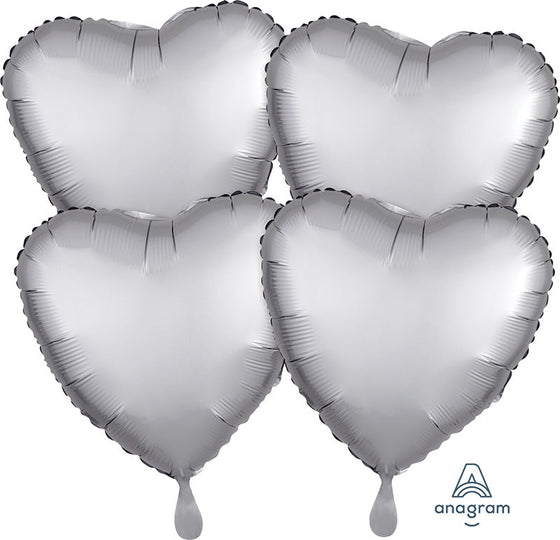 Globo metalizado de corazones de platino Satin Luxe de 18" (paquete de 4)