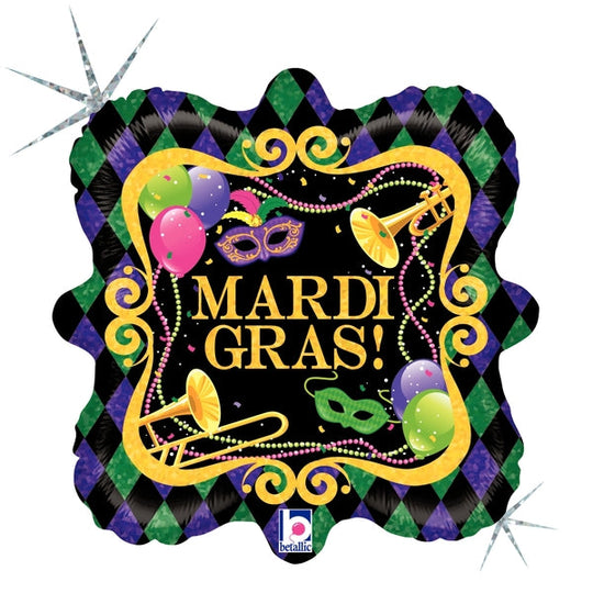 Fiesta de Mardi Gras con globo holográfico cuadrado de 18"