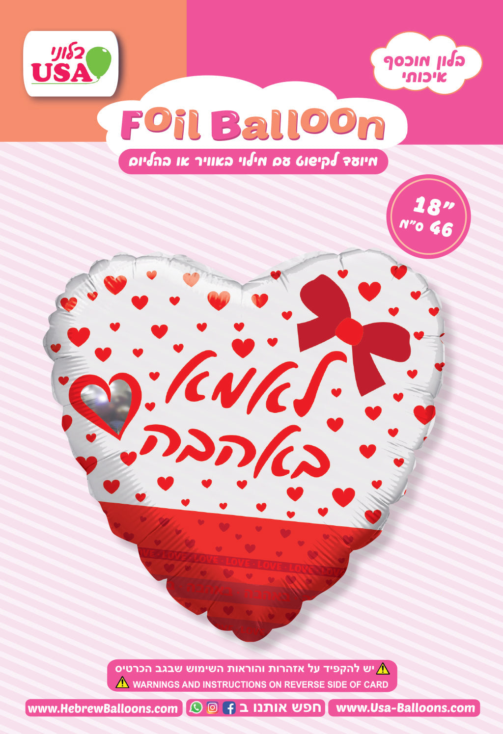 Globo de aluminio hebreo con forma de corazón y lazo de 18" a la madre con amor