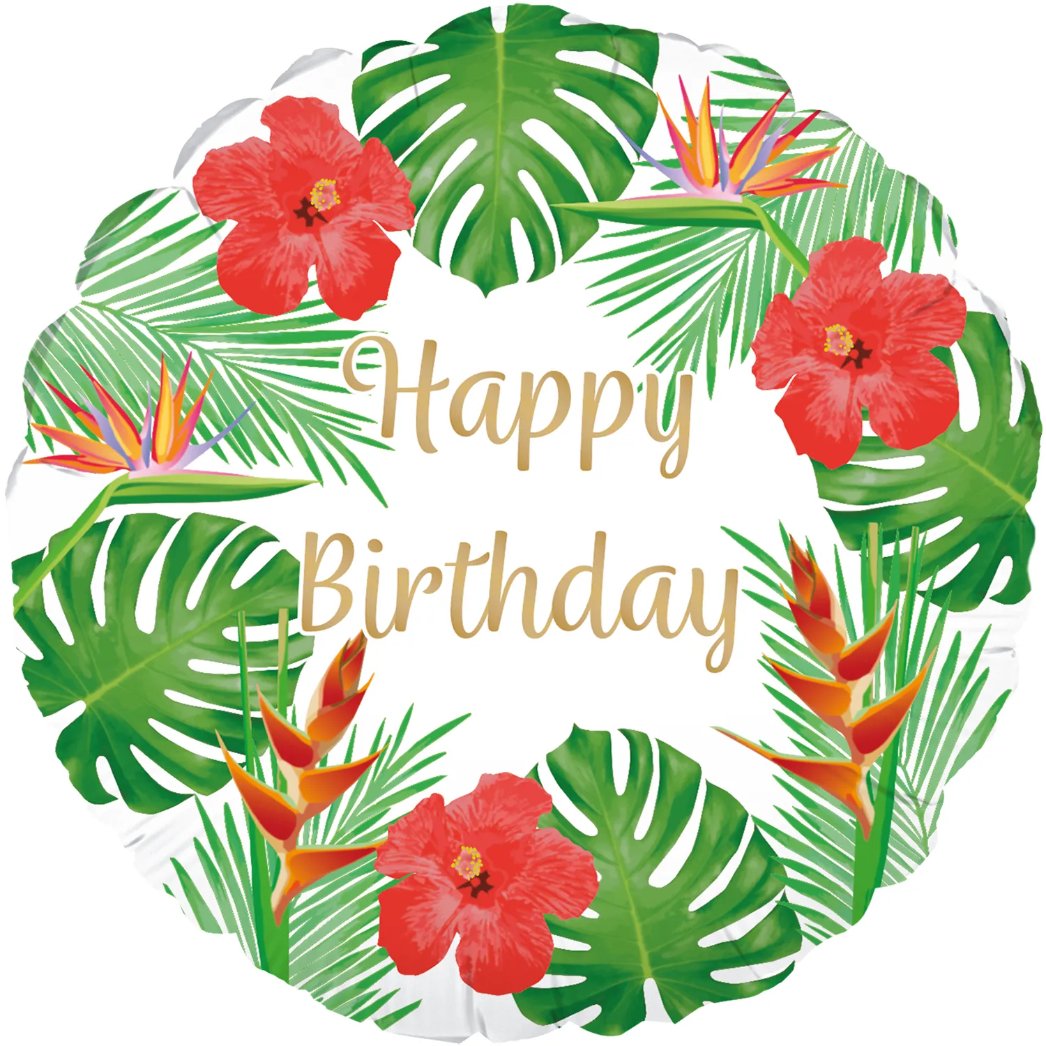 Globo de aluminio tropical de 18" con diseño de árbol de roble y feliz cumpleaños