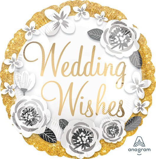 Globo metalizado dorado y plateado Wedding Wishes de 18"