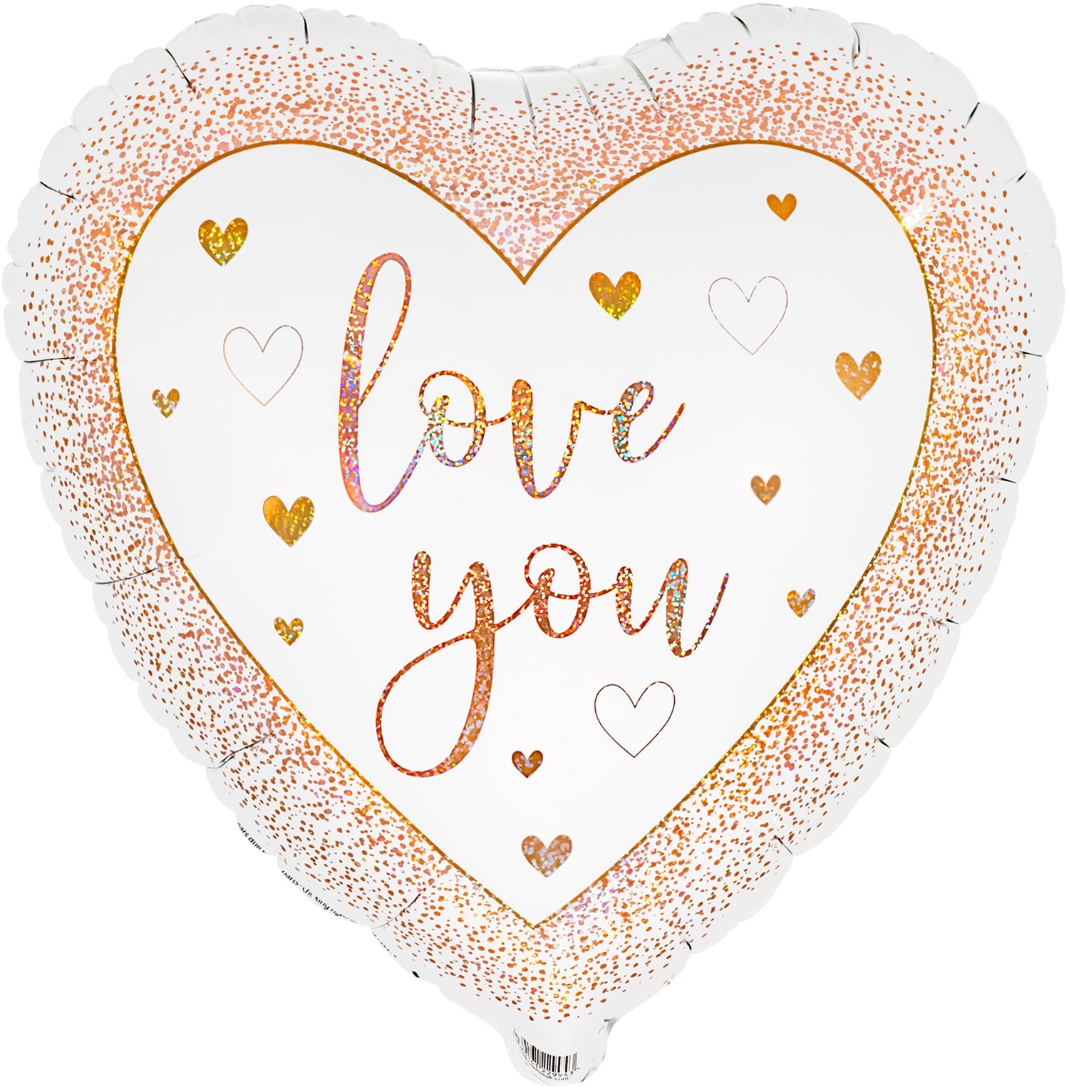 18" Love You Hearts Rose Gold Holographic Oaktree Brand Foil Balloon