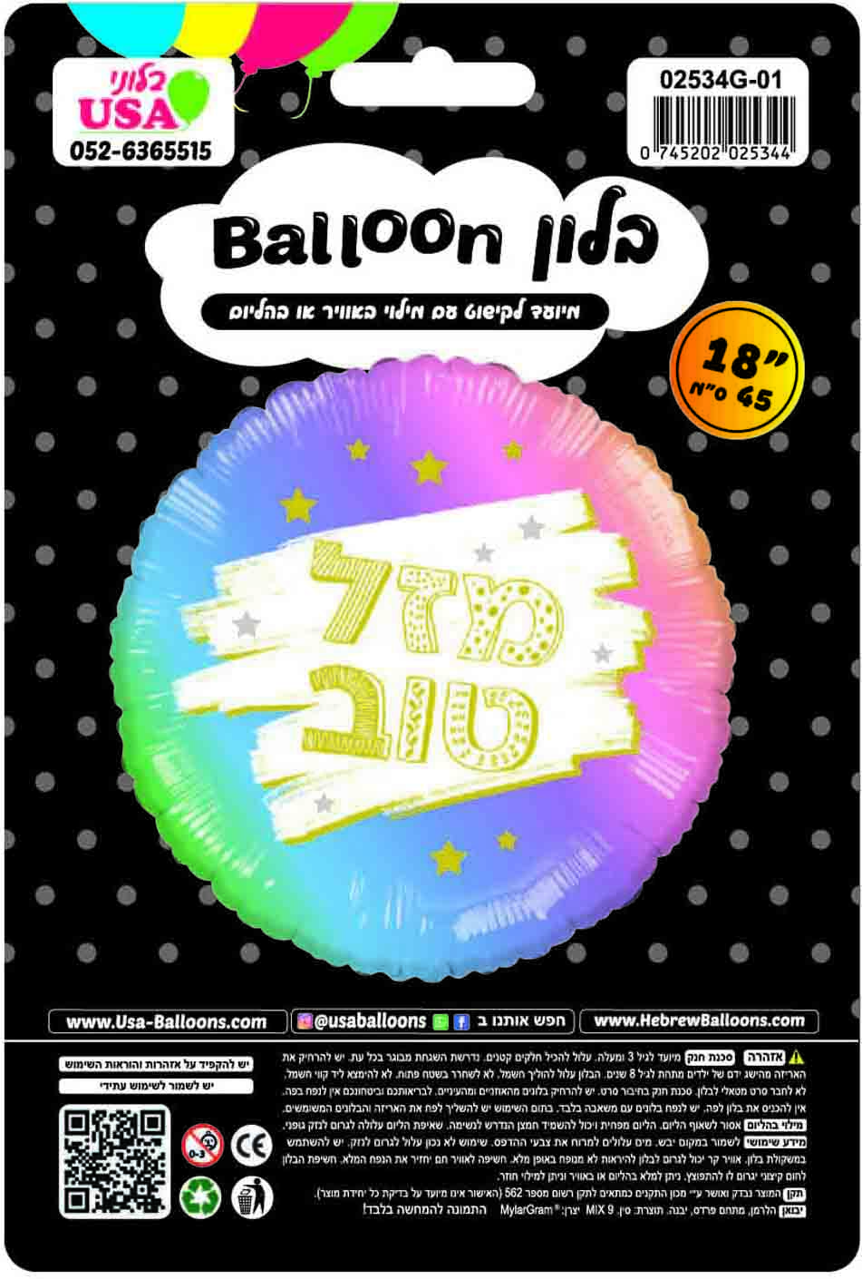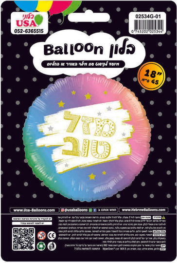 Globo redondo de aluminio Mazel Tov de 18" con diseño hebreo arcoíris blanco