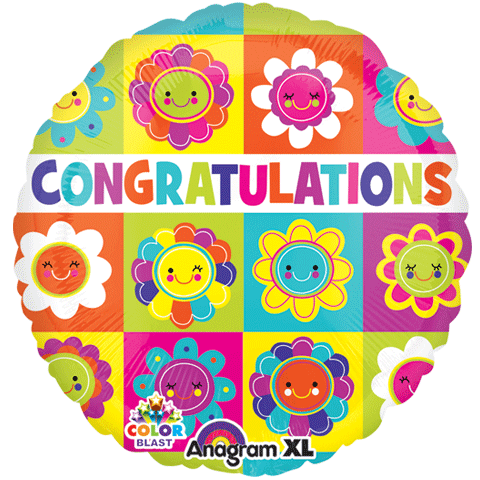 Globo empaquetado ColorBlast Congrats Flower Squares de 21"