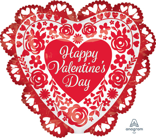 Globo de aluminio rojo con rosas de San Valentín intrincadas de 23"