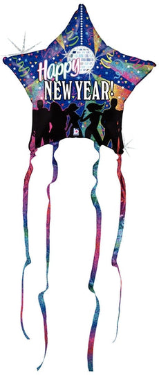 Globo con serpentinas de estrella fugaz de Año Nuevo de 23"
