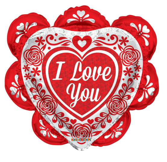 Globo de aluminio con adornos y corazón con volantes Te amo de 26"