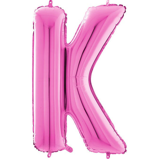 Globo metalizado fucsia con forma de letra K de tamaño mediano de 26"
