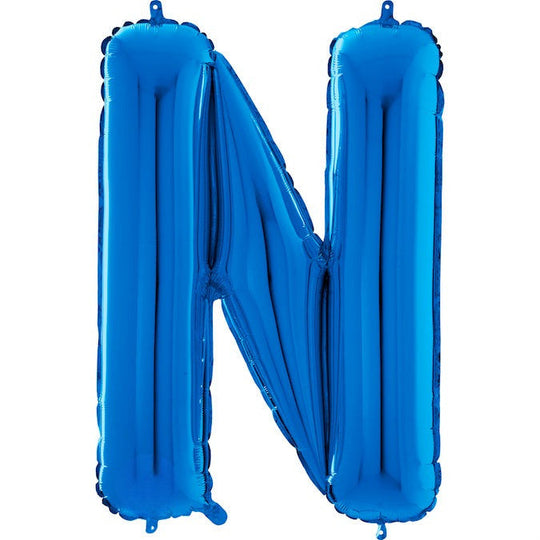 Globo metalizado azul con forma de letra N de tamaño mediano de 26"