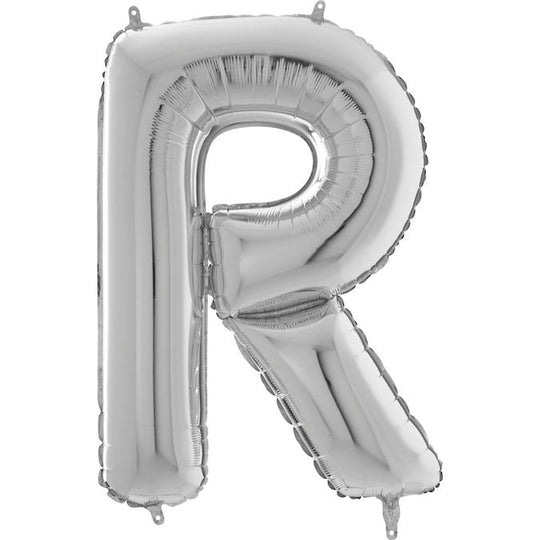 Globo de aluminio plateado con forma de letra R, tamaño mediano, 26"