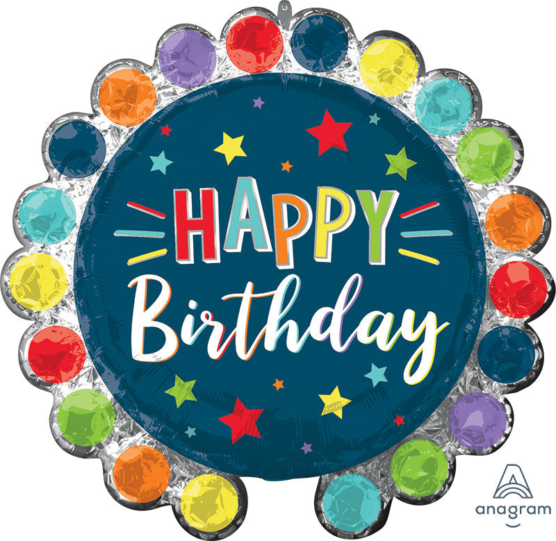 Globo de aluminio de cumpleaños con círculo de puntos SuperShape de 26"