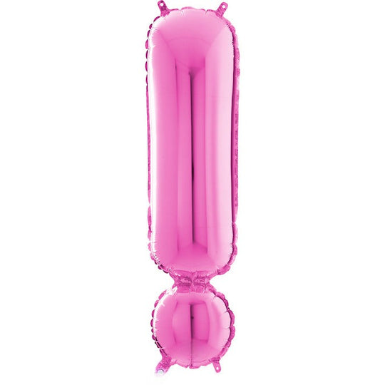 Globo metalizado fucsia con símbolo de exclamación de 26"