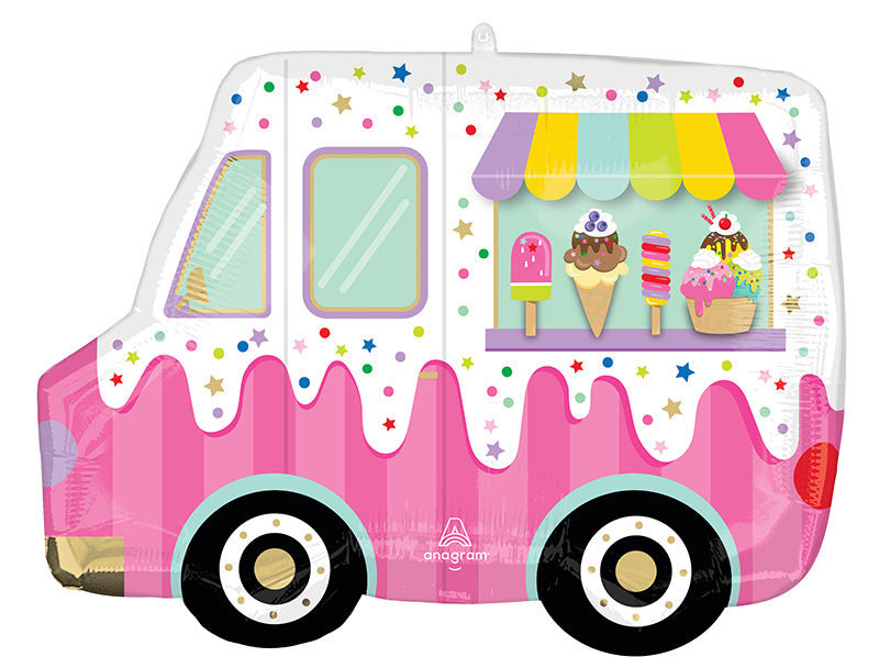 Globo de aluminio SuperShape de 26" con la frase "Aquí está la bola" en el camión de helados