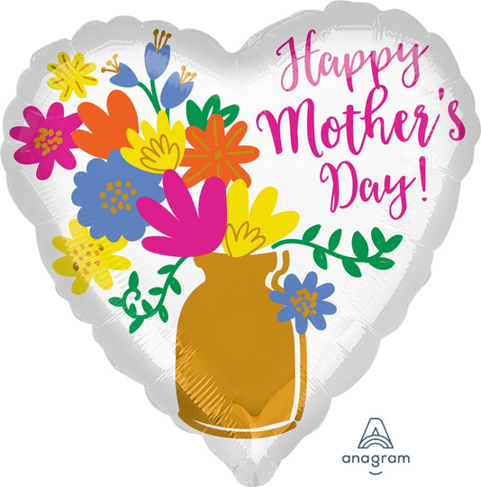 Globo de aluminio con forma de florero dorado Feliz Día de la Madre de 28"