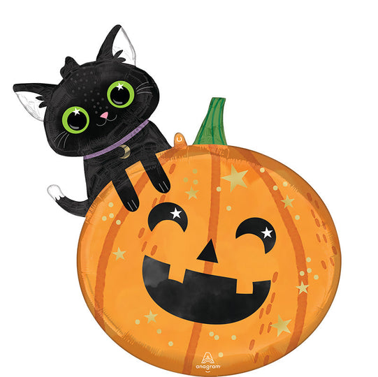 Globo de aluminio gigante con diseño de gato y calabaza de Halloween de 29"