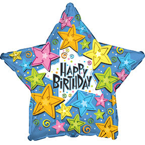 Globo empaquetado con estrellas y remolinos de feliz cumpleaños de 31"