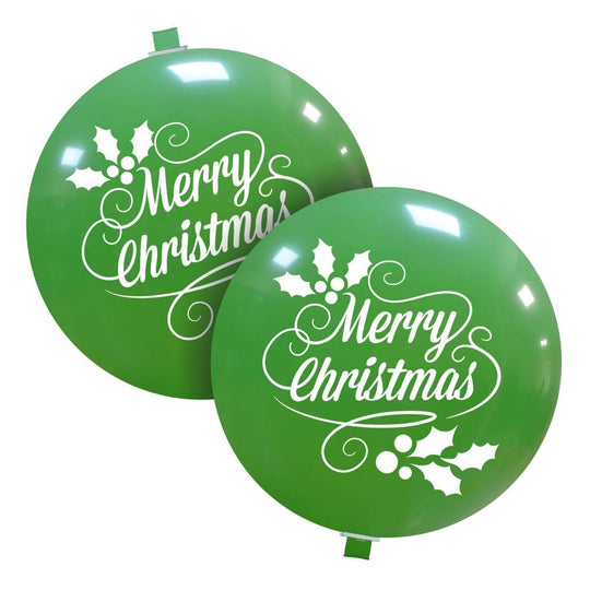 Globos de látex Cattex estampados de 81 cm, color verde acebo navideño, cuello hacia abajo, de 2 lados (1 por bolsa)