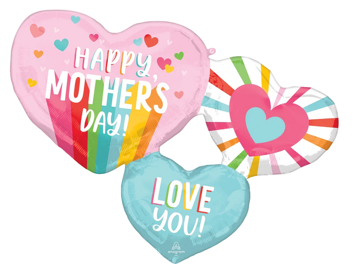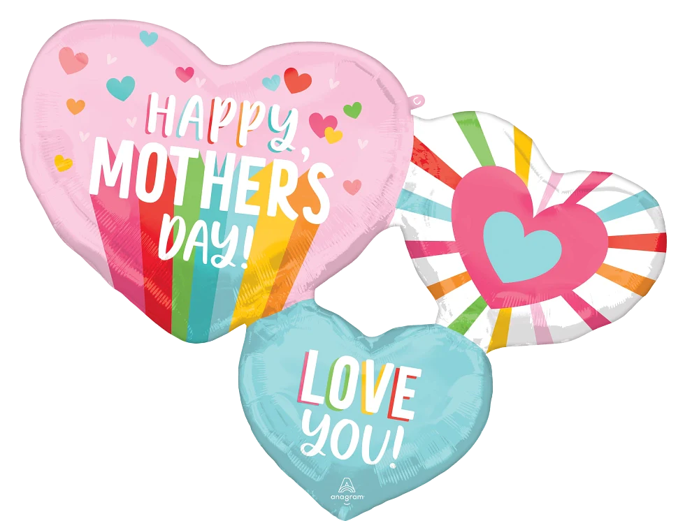 Globo de aluminio gigante con forma de corazones y rayas brillantes, feliz día de la madre, 33"
