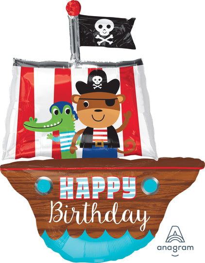 Globo gigante de barco pirata feliz cumpleaños de 34"
