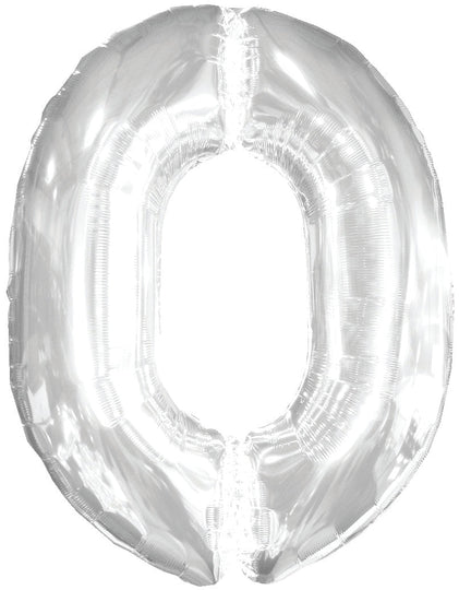 Número Jumbo #0 de 34" - Globo metalizado plateado