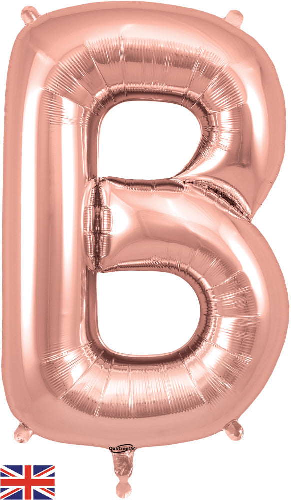 Globo de aluminio de marca Oaktree de oro rosa con letra B de 34"