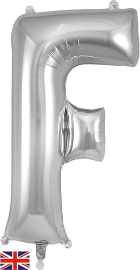 Globo de aluminio plateado de la marca Oaktree con letra F de 34"