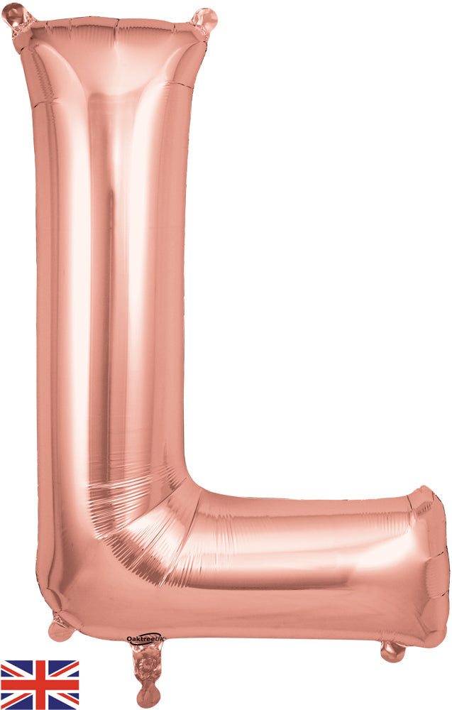 Globo de aluminio de marca Oaktree de oro rosa con letra L de 34"