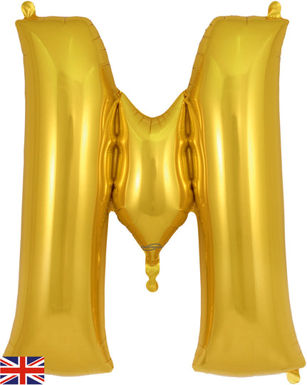 Globo metalizado dorado de la marca Oaktree con letra M de 34"