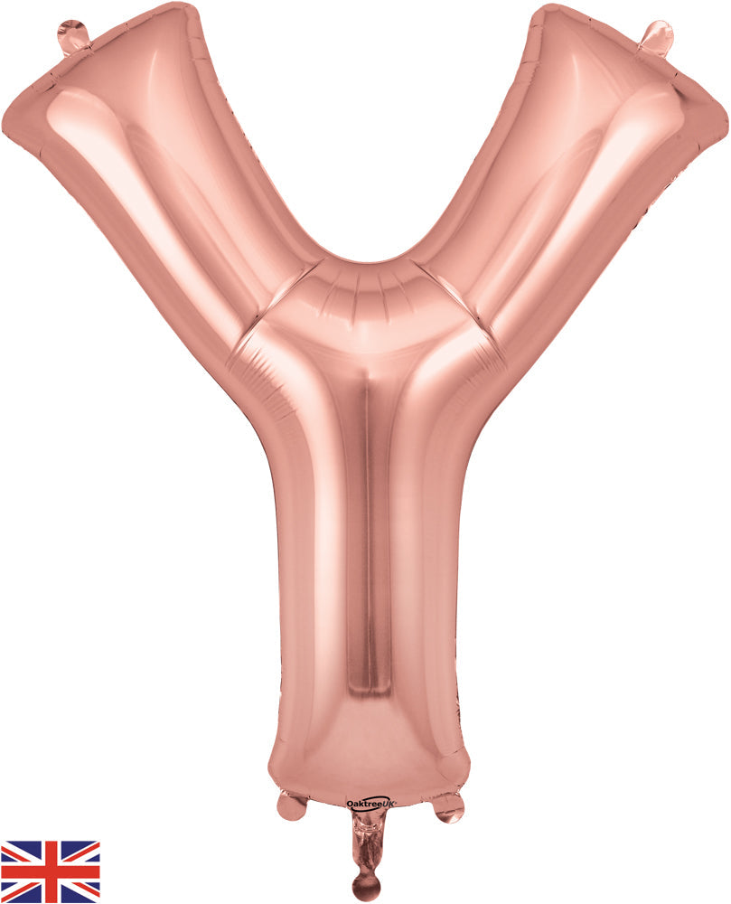 Globo de aluminio de marca Oaktree de oro rosa con letra Y de 34"