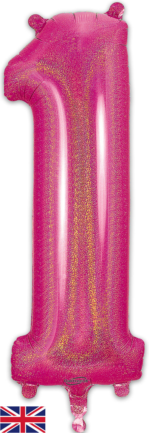 Globos holográficos con números rosados de la marca Oaktree de 34"