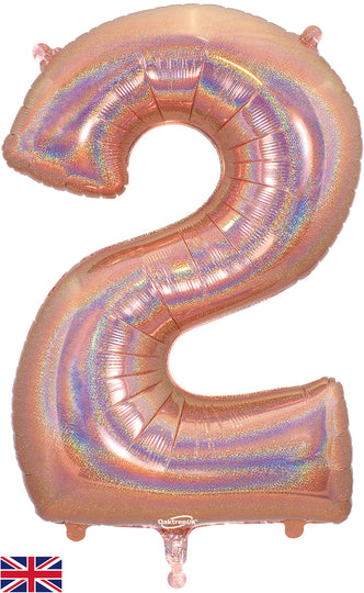 Globos holográficos con números en oro rosa de la marca Oaktree de 34"