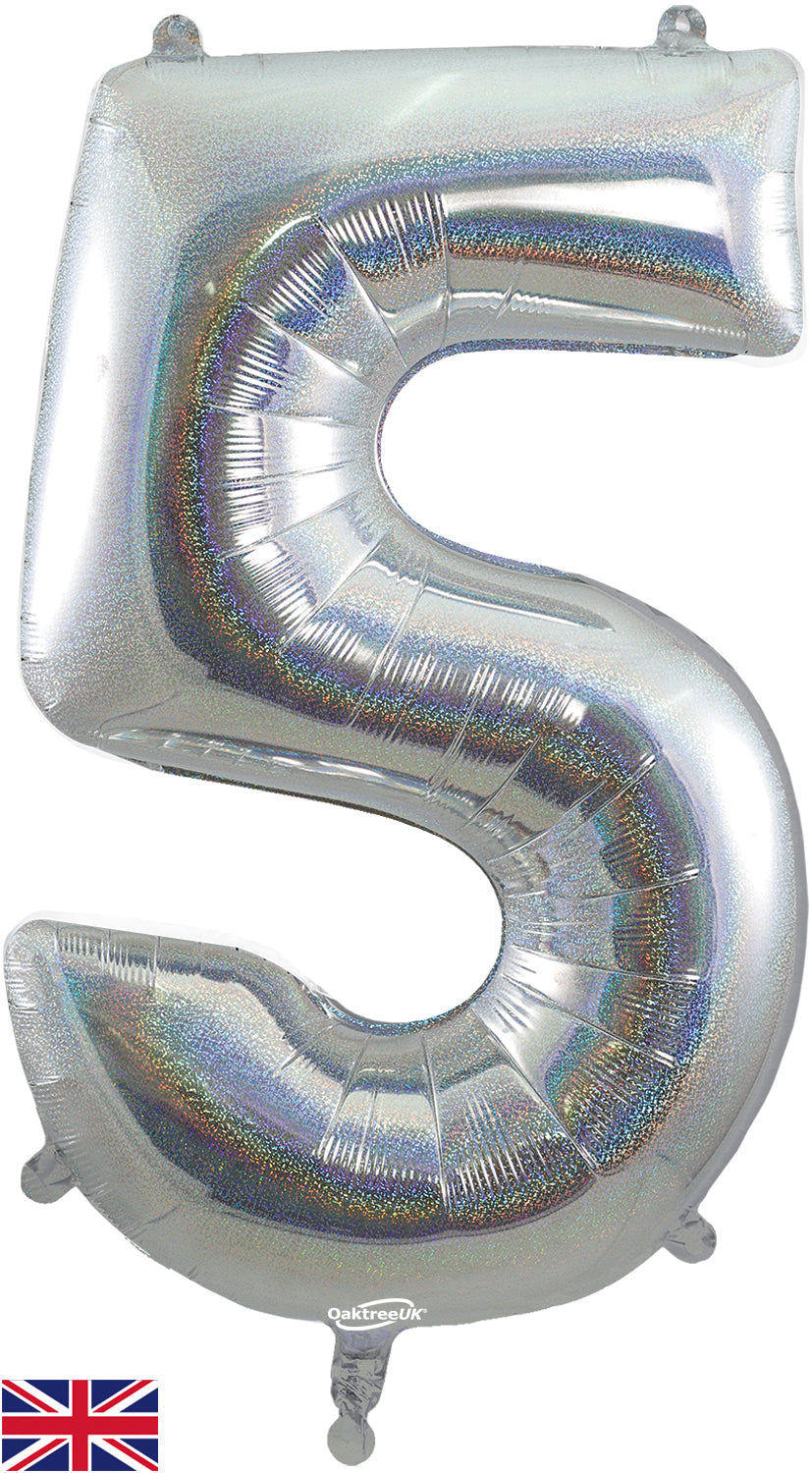 Globo holográfico plateado de roble con número 5 de 34"