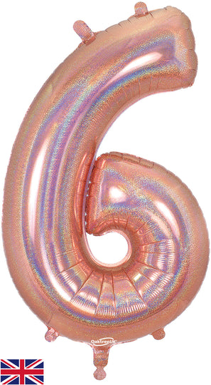 Globos holográficos con números en oro rosa de la marca Oaktree de 34"